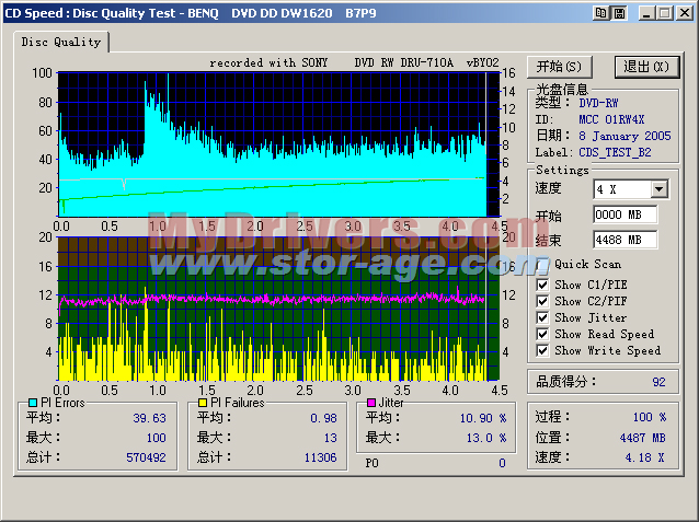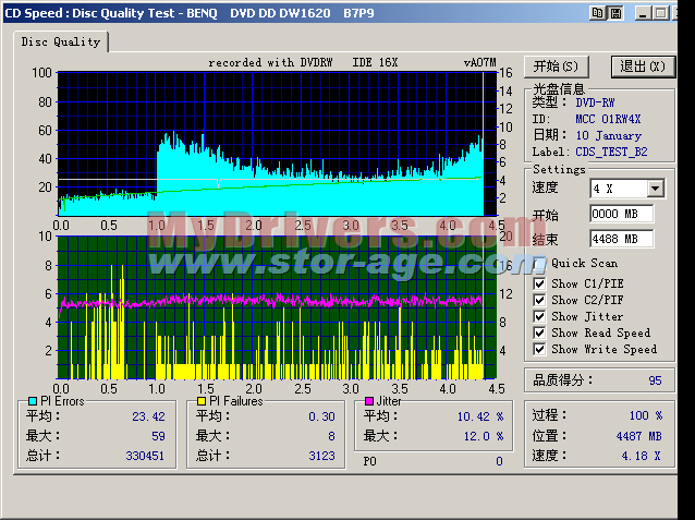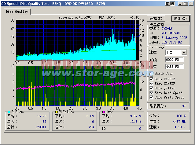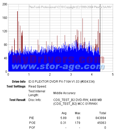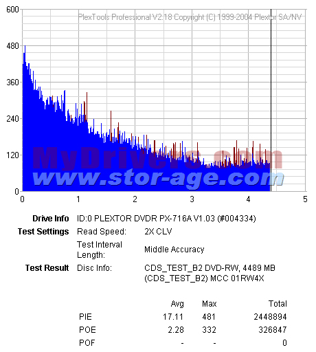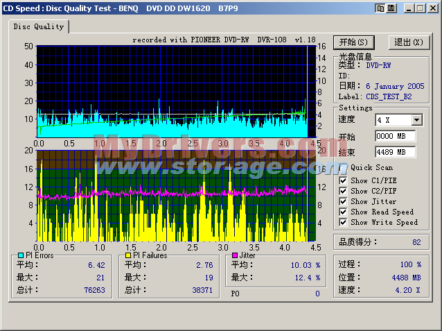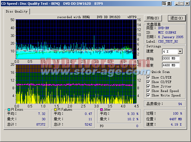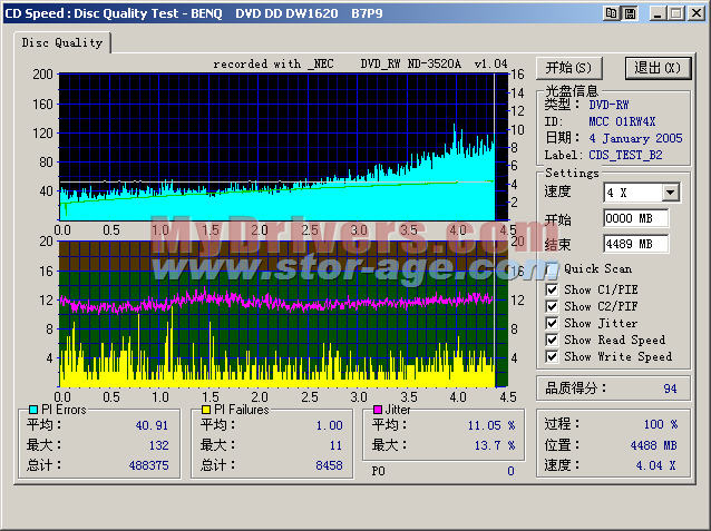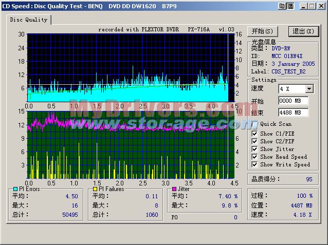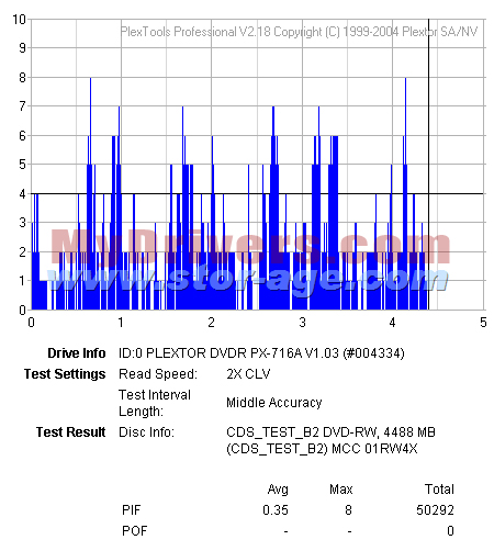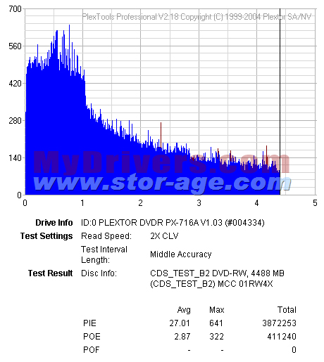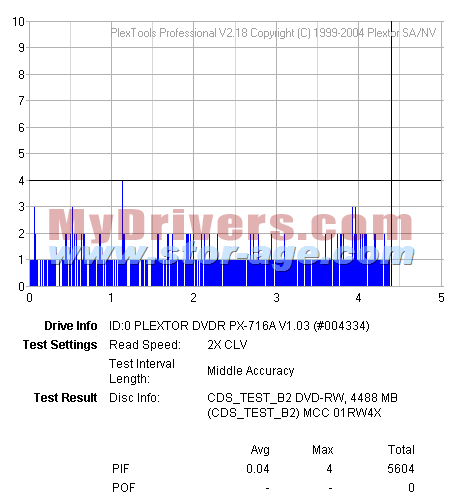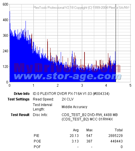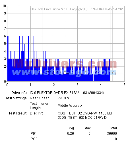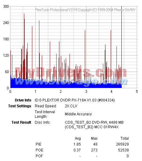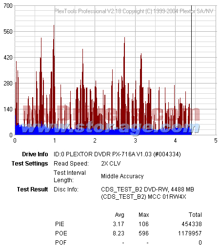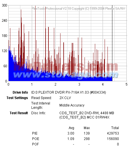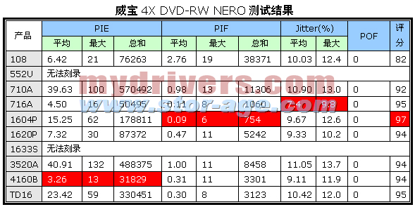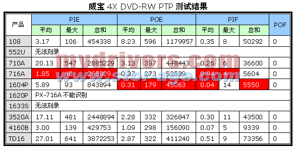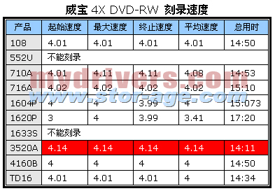 问题出来了,虽然3520A仍然以4.14X获得速度冠军,但552U与1633S却无法进行刻录,1620P刻录出来光盘,716A与1620P自己均无法识别,可见威宝这张盘片不受欢迎的程度,在仅存的果实中,1604P与716A在刻录质量方面表现出色。