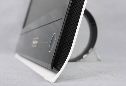 华硕MS246H正面基本为黑色,背部基本为白色,但黑白中间还有一层空间,用网状金属将黑色和白色联系在一起,采用网状金属显然是为了更好的散热,而整体厚度却控制到难以置信的16.7mm,细细体会产品的造型设计,不得不叹服华硕工业设计的非凡实力。